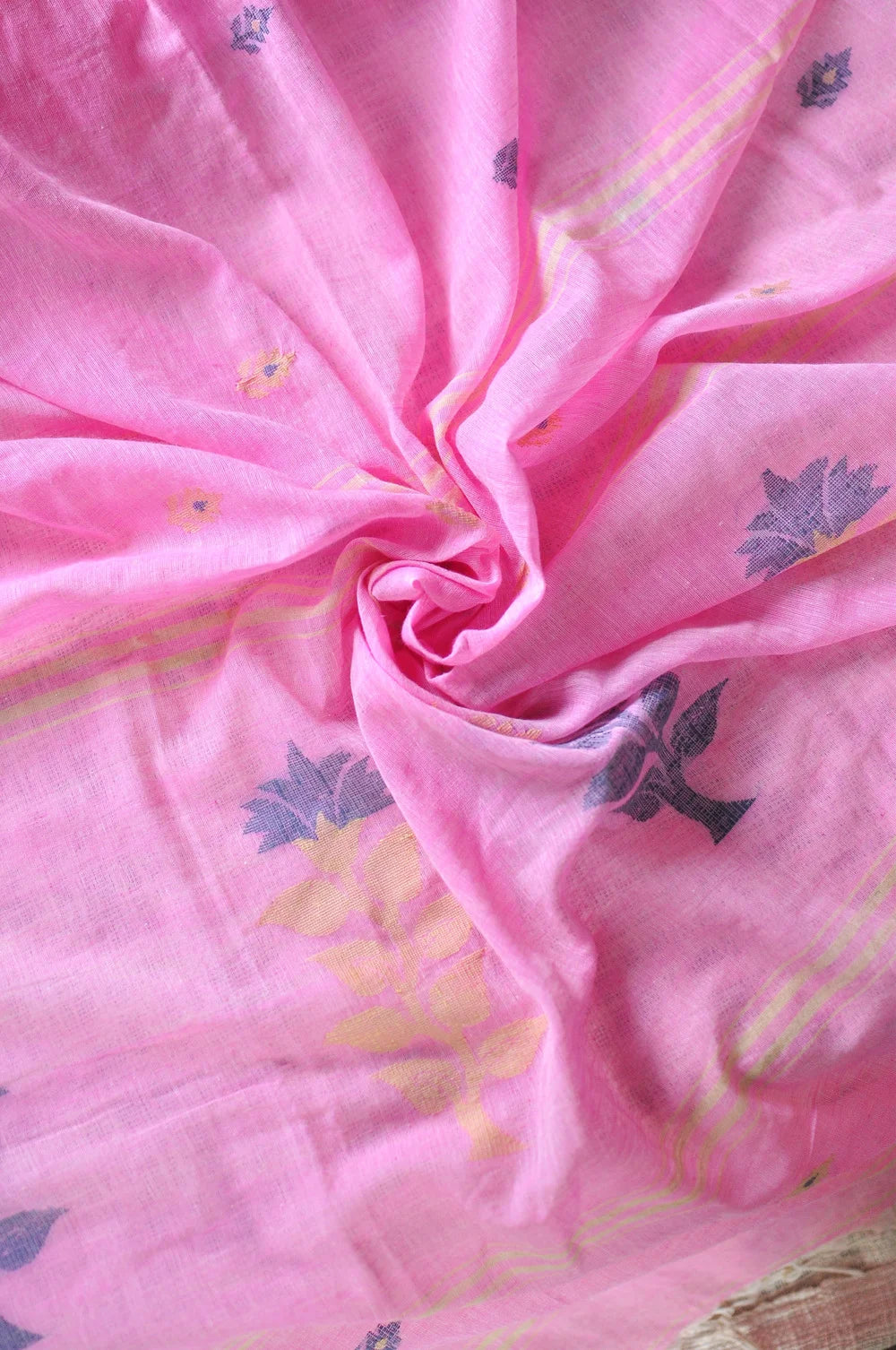 Pit-loom woven cotton sarees from Dhaniakhali, known for their airy weave, crisp texture, and everyday elegance. Honest handloom, just as it’s meant to be.