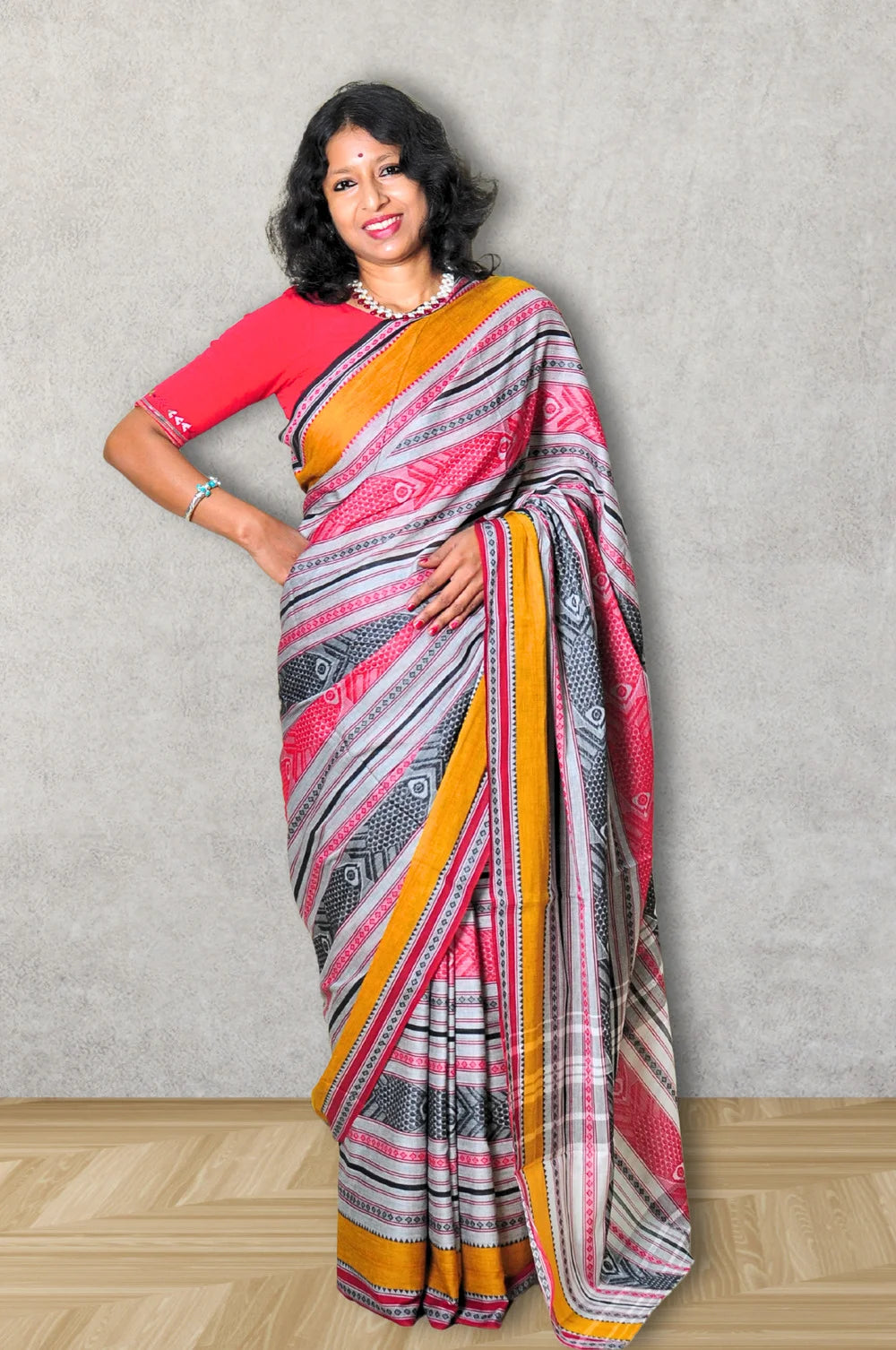This saree has personality, not noise.